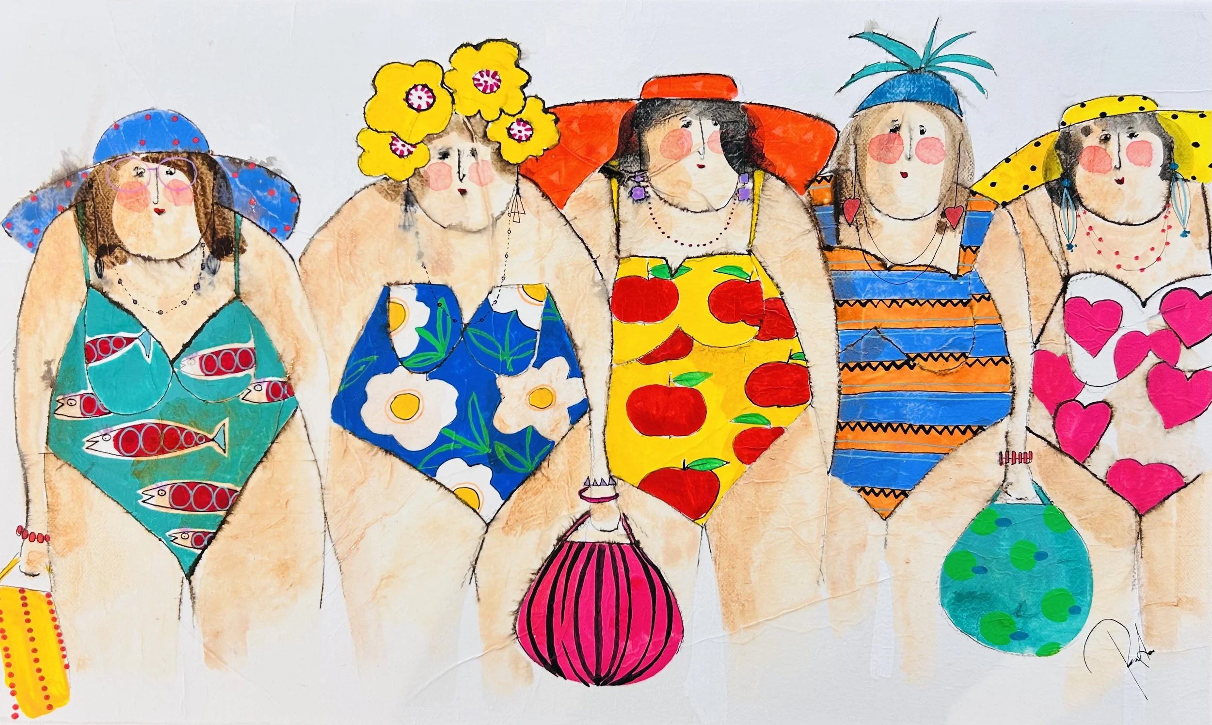 DES BAIGNEUSES AUX FORMES GÉNÉREUSES SE RÉPONDENT, GRAPHIQUES, IRONIQUES ET TENDRES.